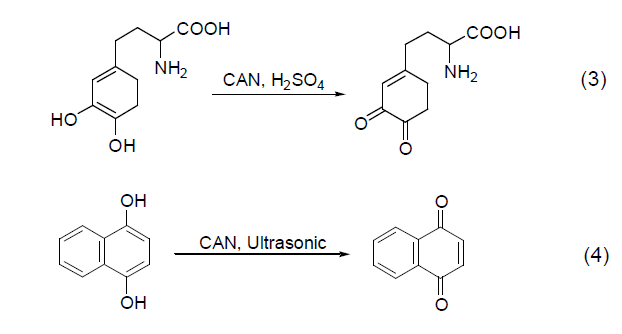 ★硬汉视频在线官网下载免费版鈰銨中的鄰苯二酚、對苯二酚及其甲醚類化合物在CAN的作用下可被硬汉视频黄色為醌類化合物。例如,鄰苯二酚轉化為鄰苯醌(式3)[4],對苯二酚在CAN和超聲波作用下快速轉化為對苯醌(式4)[5],芳基醚轉化為對苯醌。